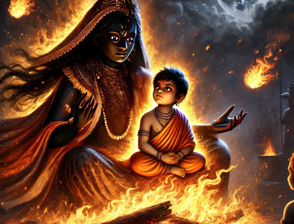 Hiranyakashipu’s sister had a cloak that made her immune to fire. He ordered her to sit in a blazing bonfire with Prahlad in her lap. But what happened?”